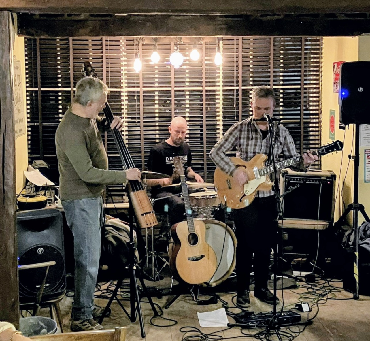 From the opening chiming guitar — a direct, affectionate wink to The Byrds, Danny Goring’s move from acoustic troubadour to electric frontman is persuasive. His vocal delivery carries Dylanesque turns of phrase, conversational and rueful, while Joe Pruessner’s bass anchors each passage with orchestral poise and melodic intent. Darren Barnes’ subtle, session-schooled drumming threads the song with a steady pulse that hints at post-punk propulsion without ever overwhelming the warm rootsy core.